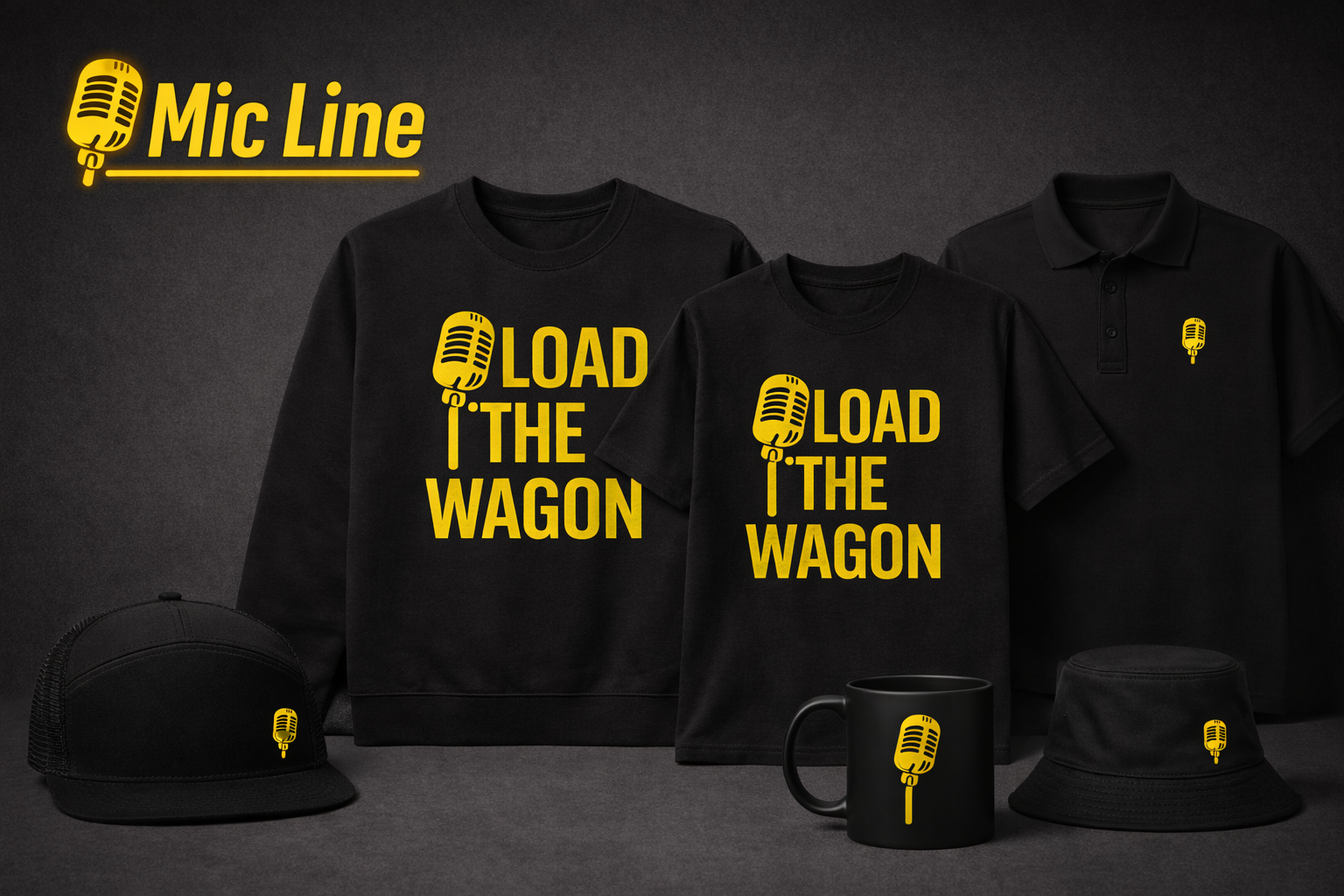 Load The Wagon Mic Line – Black Bucket Hat